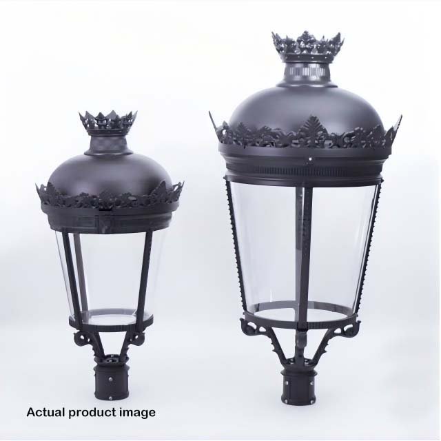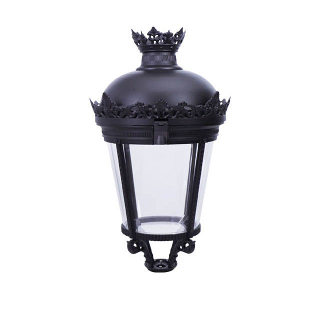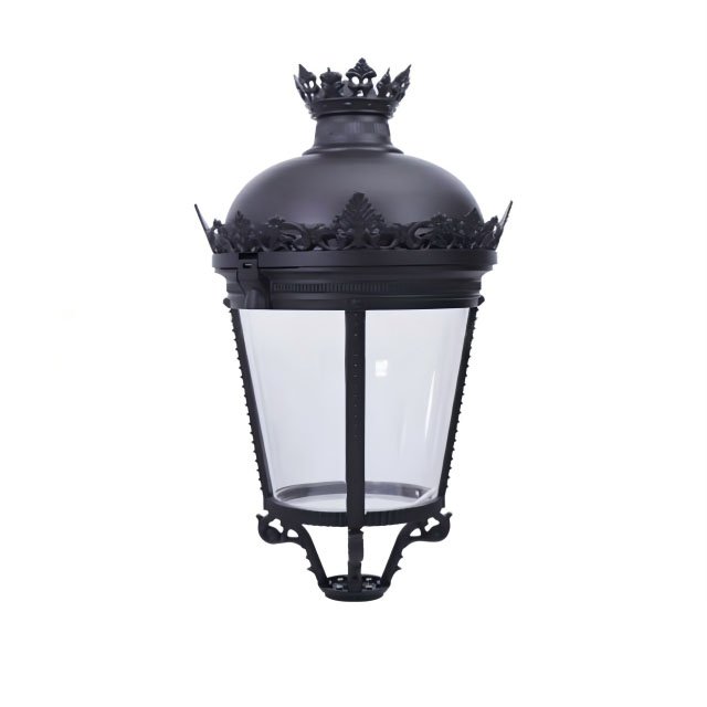 The lamp features a classic European design with an elegant crown-shaped ornament on the top. Exquisitely carved details along the edges, combined with a clear glass shade, perfectly blend vintage aesthetics with functional lighting. It serves as an attractive landscape element during the day and creates layered, refined illumination at night, enhancing the overall quality of garden and courtyard environments.